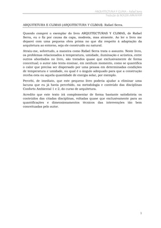 1) O documento discute como o clima e o microclima influenciam a arquitetura e como a arquitetura tradicional é adaptada às condições climáticas locais.