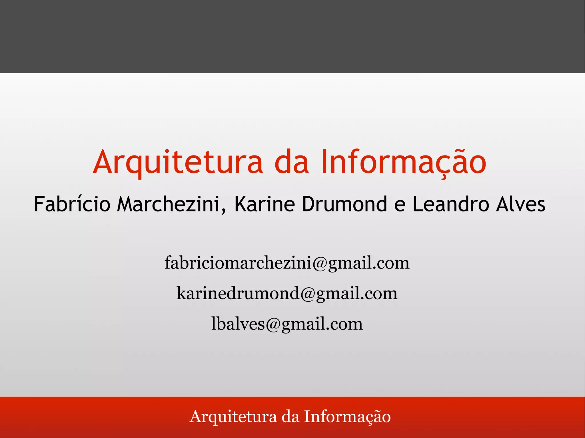 O documento discute os conceitos fundamentais de arquitetura da informação, incluindo suas definições, o papel do arquiteto da informação, e os componentes essenciais como organização, rotulação e sistemas de navegação.