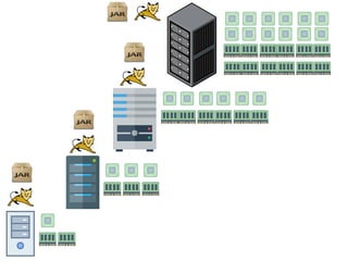 O documento aborda estratégias para escalar aplicações Java, discutindo conceitos essenciais como tempo de resposta e throughput. São apresentados passos práticos para otimização, incluindo ajustes na aplicação, melhoria da infraestrutura e escalabilidade horizontal e vertical. Além disso, destaca a importância de gerenciar estado e implementar soluções de alta disponibilidade.