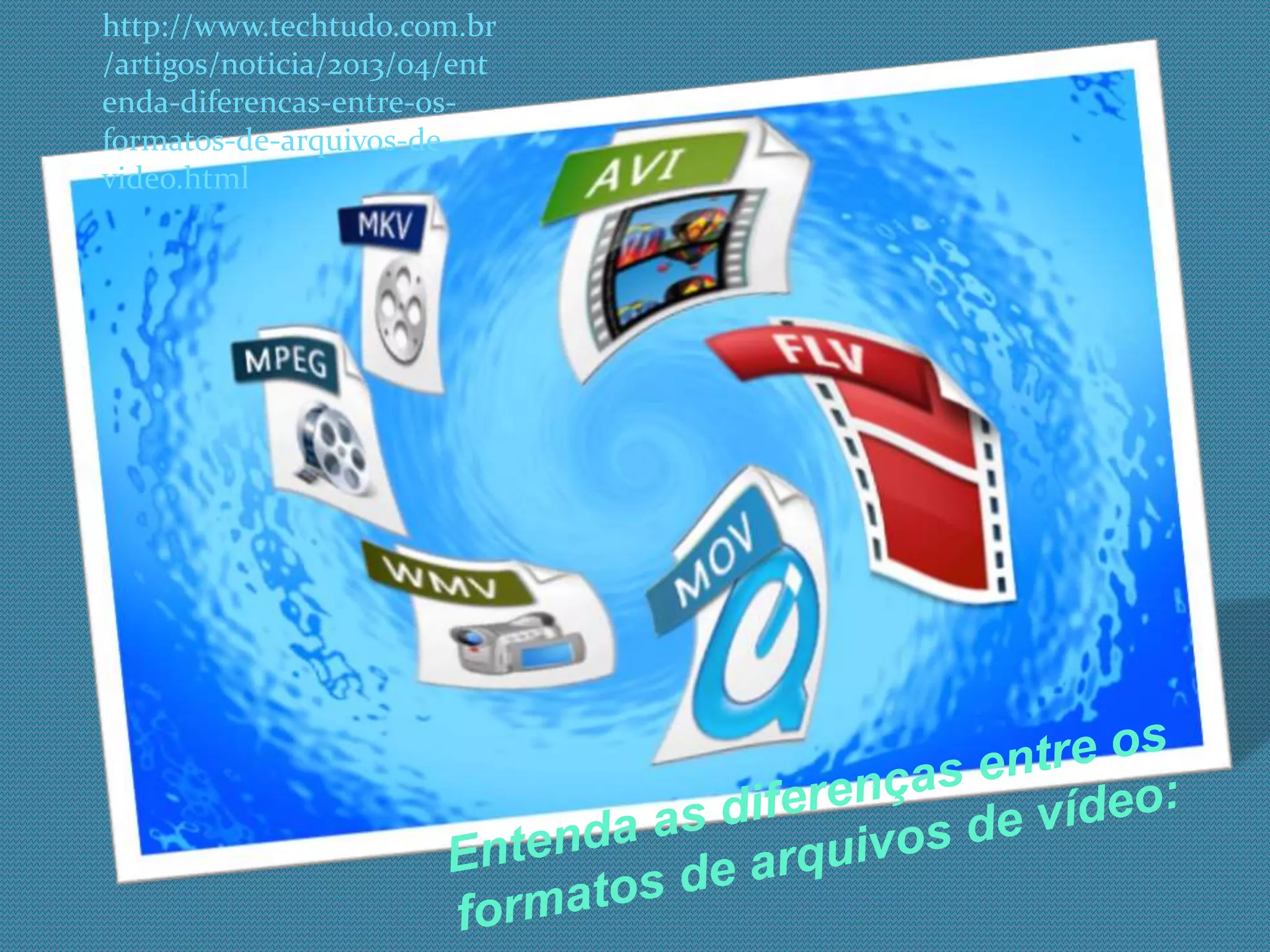 O documento explica os principais formatos de arquivos de vídeo, como FLV, AVI, WMV, MOV, RMVB, MPEG e MKV. Cada formato possui especificidades como o tipo de codec utilizado e em quais dispositivos são compatíveis, afetando fatores como tamanho e qualidade do arquivo.