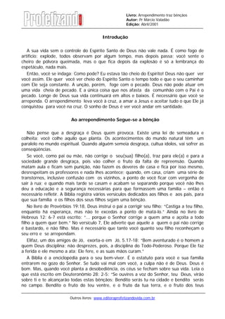 arrependimento e obediência trazem bênçãos. A vida sem o controle do Espírito Santo