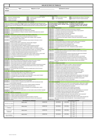 Este documento fornece um resumo da análise preliminar de riscos de uma determinada fábrica ou setor. Ele lista potenciais fontes de riscos, medidas de controle necessárias e equipamentos de proteção individual. Responsáveis devem assinar para aprovar e validar periodicamente o plano de segurança.