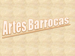 O documento descreve o estilo artístico Barroco, que surgiu em Roma no final do século XVI como apoio à Contra-Reforma Católica. O Barroco se caracteriza por formas complexas, movimento, luxo e uso de luz e sombra. Espalhou-se por países católicos e suas colônias, influenciando arquitetura, pintura, escultura e música até o século XVIII.