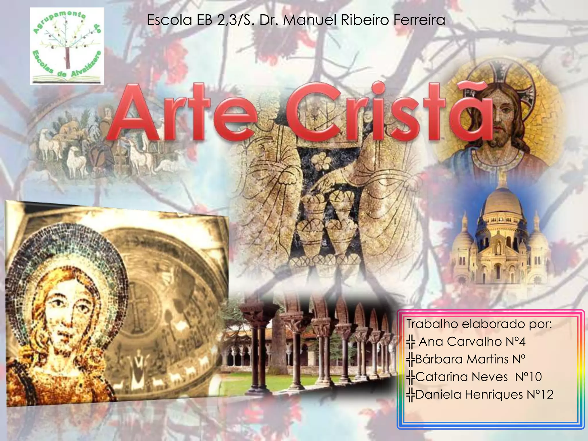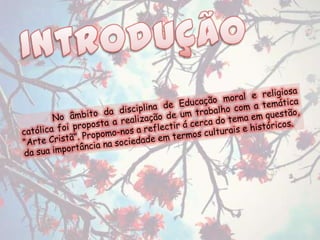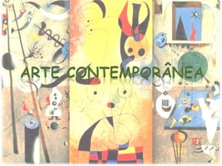 Este documento discute a arte cristã ao longo dos séculos, desde a arte paleocristã até a arte contemporânea. Aborda estilos como a arte bizantina, românica, gótica, renascentista, barroca e neoclássica, destacando características arquitetônicas, pictóricas e esculturais em cada período. Também discute o romantismo e a arte contemporânea.