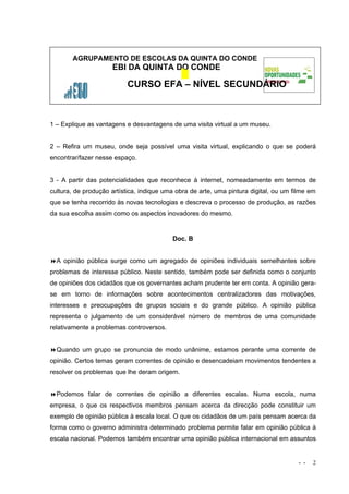 1 – Explique as vantagens e desvantagens de uma visita virtual a um museu.