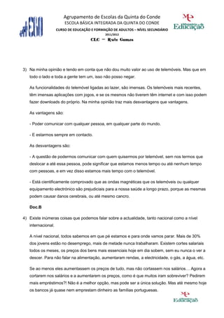 3) As vantagens e desvantagens do uso de telefones celulares, focando nos impactos negativos potenciais da radiação em nossa saúde.