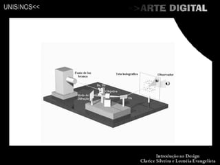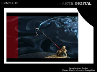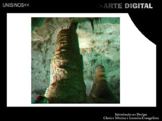 O documento descreve diversos tipos de arte digital, incluindo net arte, web arte, vídeo-arte, pintura digital, gravura digital, modelagem 3D, edição de fotos e imagens, animação, fractais, arte 3D, arte vetorial, pixelart, desenho digital e manipulação de fotos. Também menciona exemplos como arte cinética, ligada ao movimento, e arte cibernética, que cria estruturas reativas usando feedback e sensores.