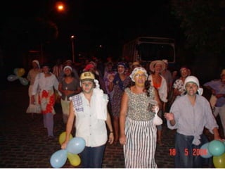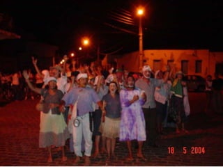 O documento descreve uma atividade de formação em arte e educação realizada na Universidade Estadual da Bahia, focando na criação de um cortejo cênico pelos alunos-professores do curso de pedagogia. As etapas incluem preparação, ensaio e apresentação, enfatizando a importância da expressão artística e da integração comunitária. A arte é apresentada como uma ferramenta para potencializar identidades e promover o desenvolvimento humano.