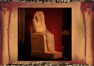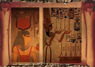 A arte egípcia antiga esteve diretamente ligada à religião e política, com o faraó possuindo todo o poder. A arte buscava exaltar e homenagear o faraó e as divindades por meio de pinturas simbólicas nas cores vermelho e ocre, esculturas frontais associadas à arquitetura e grandes construções como pirâmides e templos que expressavam a eternidade e o poder real.