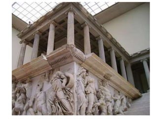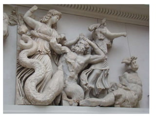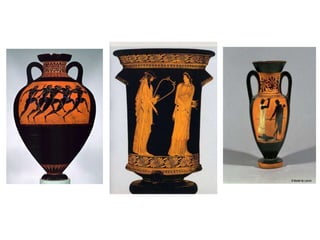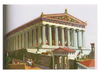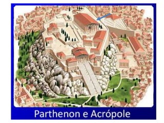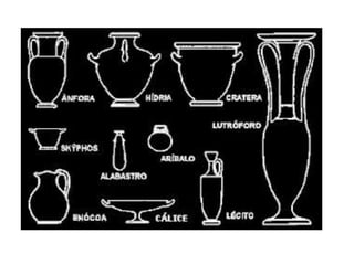 - O documento descreve a evolução da arte grega, desde o período arcaico até o período helenístico, abordando escultura, arquitetura e pintura. É destacada a importância da racionalidade e da representação do corpo humano na arte grega.