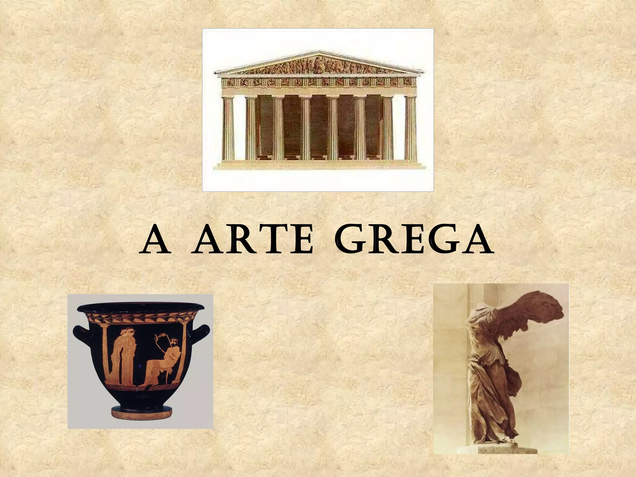 1) A arte grega atingiu seu auge nos séculos V-IV a.C., caracterizada por harmonia, equilíbrio e proporção.