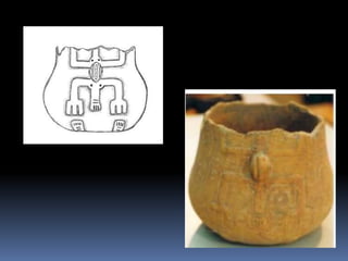 Este documento descreve a arte de vários povos indígenas pré-colombianos e pré-cabralinos na América, incluindo os Olmecas, Maias e Astecas, assim como povos do Brasil como os Marajó e Santarém. Detalha como viviam, culturas, cerâmicas, esculturas e arquitetura. Também discute a arte plumária e pintura corporal de diferentes tribos.