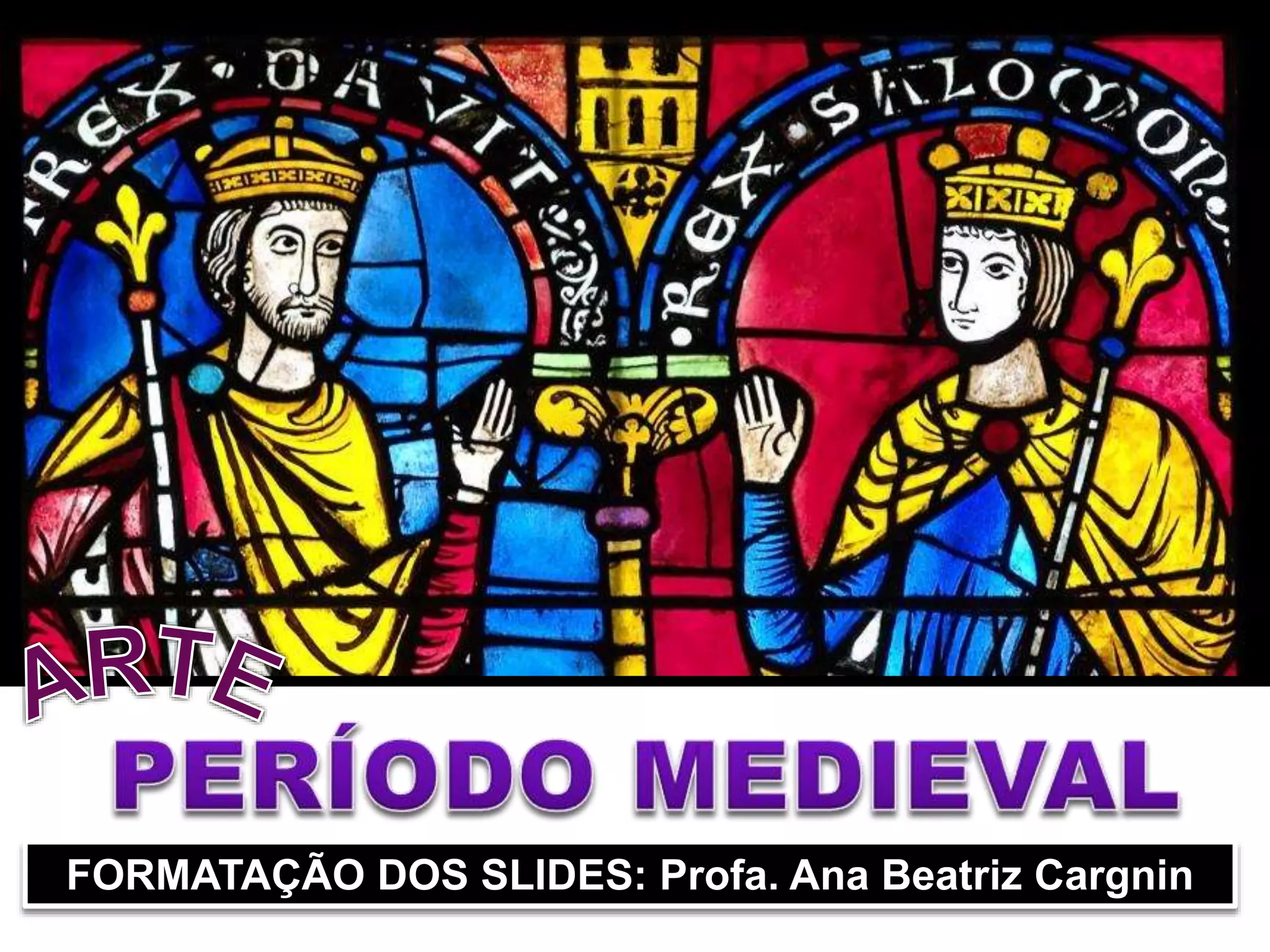 O documento descreve a evolução da arte cristã desde os primeiros anos do cristianismo até a Idade Média, abordando estilos como a arte paleocristã, bizantina, românica e gótica. Apresenta características e exemplos de obras de cada período, destacando a influência da Igreja Católica na produção artística.