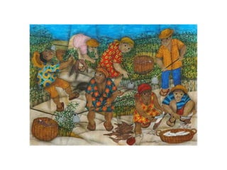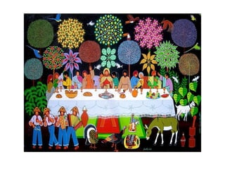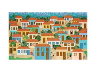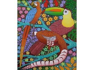 O documento descreve a arte naïf como uma viagem encantadora para um mundo de ingenuidade, cor e poesia que imortaliza o instante. A arte naïf se alimenta da imaginação infantil e ultrapassa os limites do conhecimento. Vários artistas naïfs brasileiros são reconhecidos no exterior por seu estilo espontâneo e primitivo.