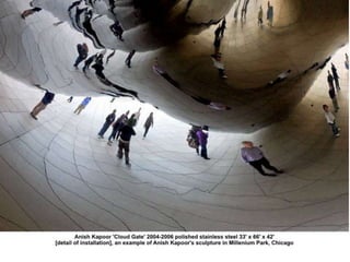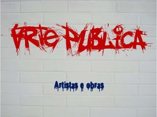 O documento apresenta breves biografias de 25 artistas de rua e conceituais como Banksy, Os Gêmeos, Daniel Melim e Kobra, descrevendo suas principais obras e locais de atuação, como Christo e Jeanne-Claude que envolveram o Reichstag em Berlim e colocaram guarda-chuvas gigantes no Japão, e Anish Kapoor que criou a escultura Cloud Gate em Chicago.