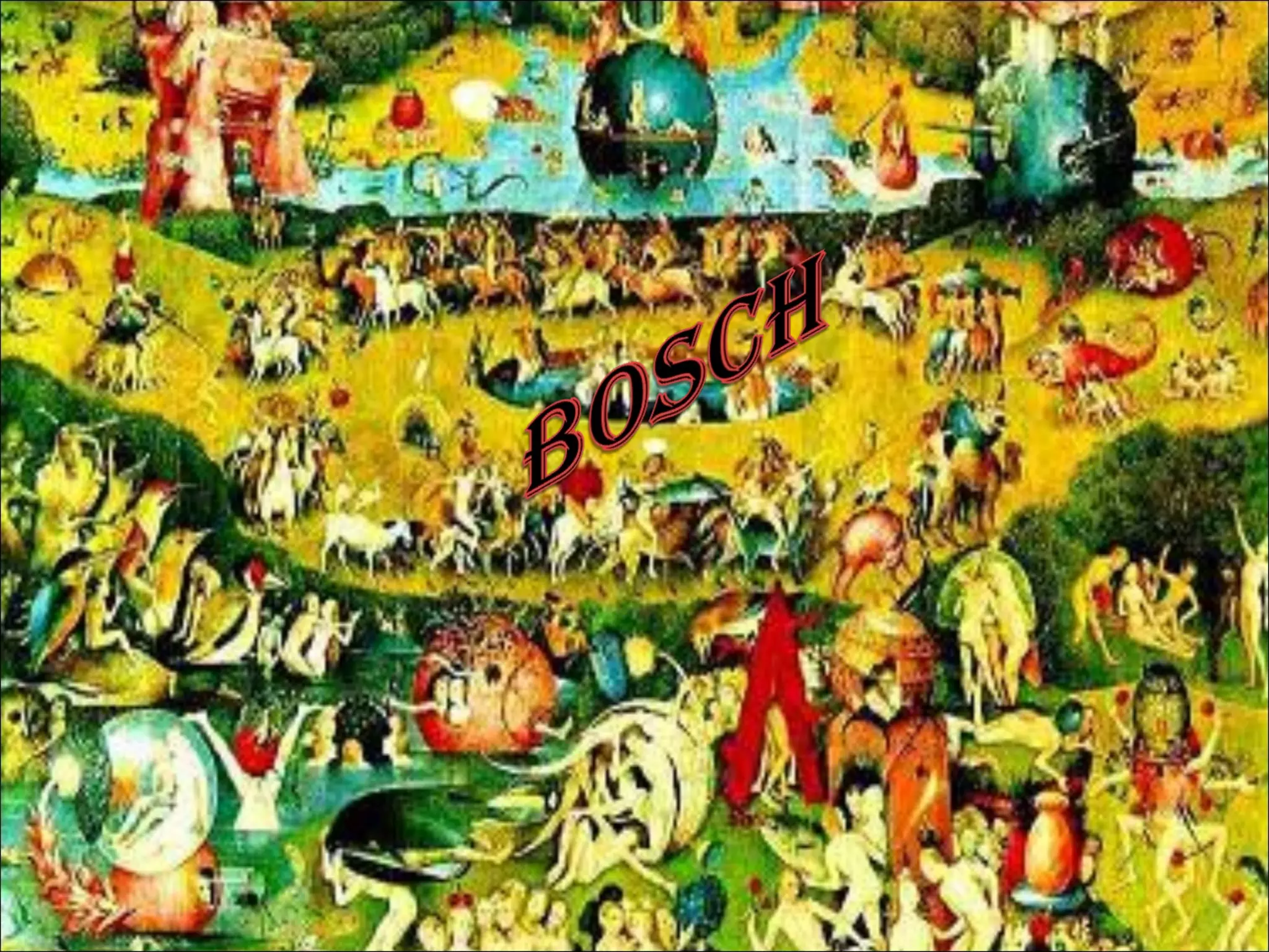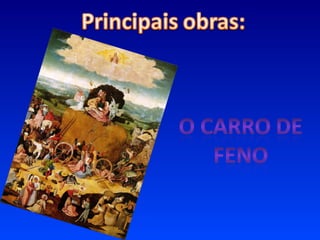 Hieronymus Bosch foi um importante pintor holandês do século XV que pintou cerca de quarenta obras explorando temas como medos, problemas psicológicos e cenas de horrores, fugindo dos temas religiosos esperados para a época. Suas obras mais famosas, como As Tentações de Santo Antão e A Nave dos Loucos, apresentam mundos surreais dominados por forças demoníacas e criticam os costumes da sociedade da época.