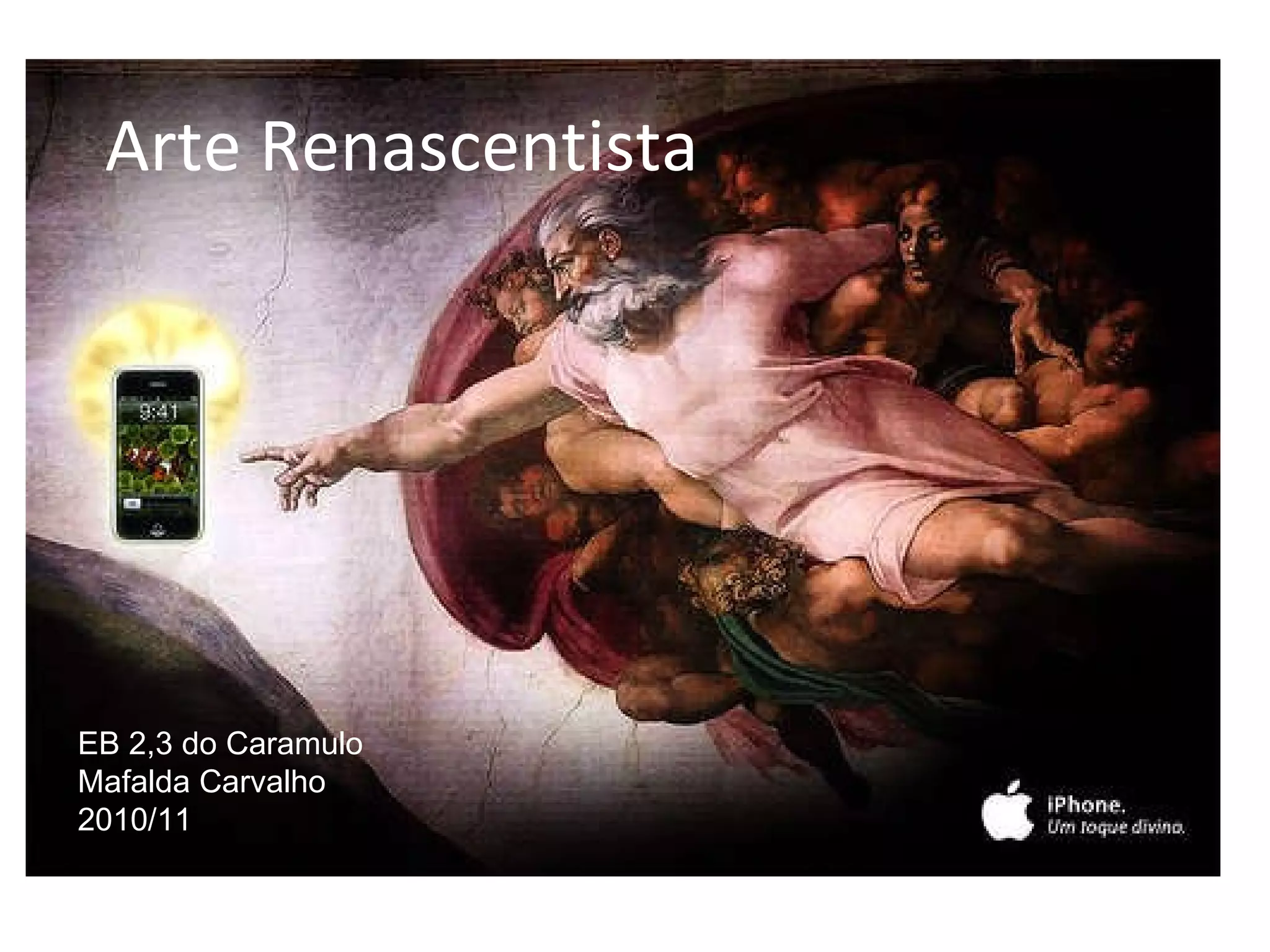 O documento descreve as características da arte renascentista na arquitetura, pintura e escultura. A arte renascentista se inspirou na arte greco-romana clássica, mas com elementos inovadores. Na arquitetura, utilizou arcos, colunas e frontões clássicos, além de abóbadas e cúpulas. Na pintura, destacou a perspectiva, composição equilibrada e naturalismo. Na escultura, valorizou o realismo e o nu.