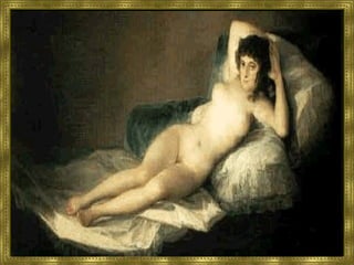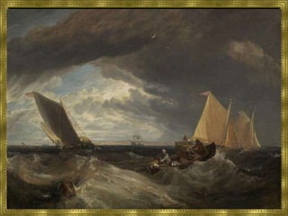 O documento descreve as principais características do Romantismo na pintura e arquitetura. Na pintura romântica, destacam-se a valorização dos sentimentos, do subjetivismo e da natureza. Na arquitetura, nota-se o revivalismo de estilos medievais e a inspiração em culturas exóticas.