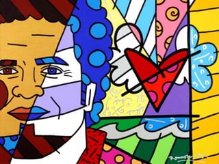 O documento resume a formação acadêmica e experiência profissional do artista plástico Sandro Bottene, incluindo seus títulos de Mestre em Artes Visuais, Especialista em Artes Visuais Cultura e Criação e Bacharel em Artes Visuais. Também fornece detalhes sobre o estilo e obra do artista plástico brasileiro Romero Britto.