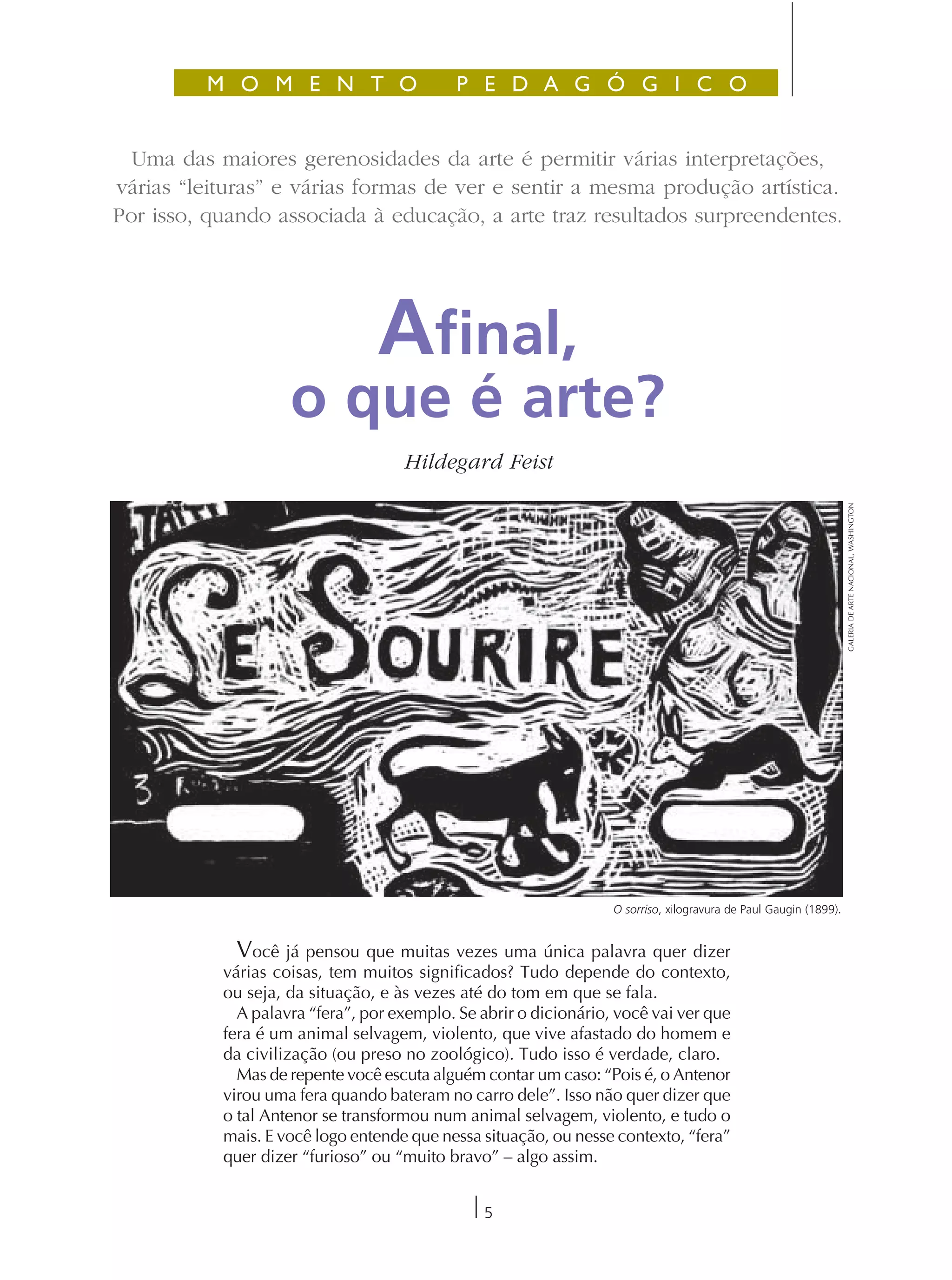 Este documento discute o significado da palavra "arte" e como ela pode ter diferentes interpretações dependendo do contexto. A autora fornece vários exemplos de como uma única palavra pode ter sentidos variados e aplica isso ao termo "arte", mostrando como ele pode se referir a criatividade, expressão de ideias ou habilidades técnicas dependendo da situação. O objetivo é levar o leitor a refletir sobre os múltiplos significados da arte antes de oferecer uma definição preliminar.