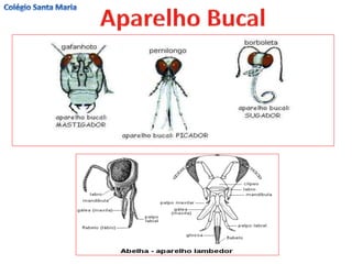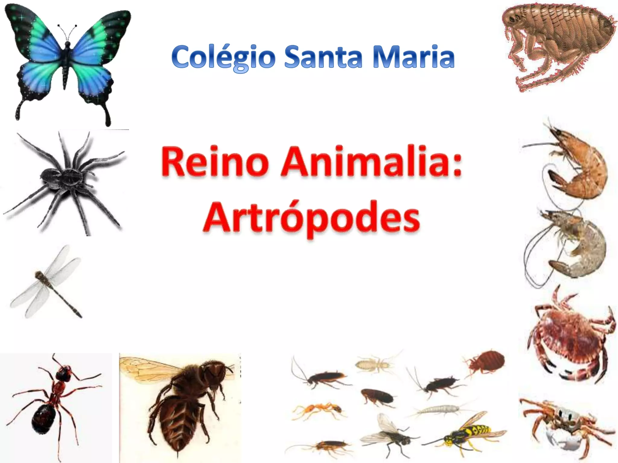 O documento descreve as principais características dos artrópodes, incluindo que eles possuem corpo segmentado e exoesqueleto, são classificados em insetos, aranhas e outros, e alguns transmitem doenças como dengue e malária.
