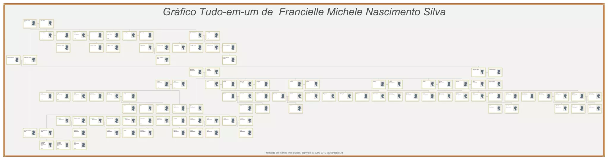 O documento apresenta um gráfico de árvore genealógica da família de Francielle Michele Nascimento Silva. A árvore mostra os pais, avós, tios e primos de Francielle, bem como as datas de nascimento dela e de alguns familiares. Muitos membros da família são identificados como "Desconhecido".