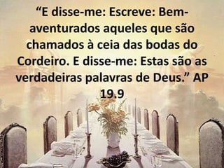 E disse-me: Escreve: Bemaventurados aqueles que são chamados à ceia das bodas do Cordeiro. E