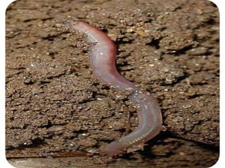 O documento descreve minhocas para estudantes da Educação Infantil, explicando que elas vivem na terra, comem raízes e folhas, têm corpos em forma de anéis e não enxergam. Também destaca que minhocas são responsáveis pela fertilização, oxigenação e drenagem do solo.