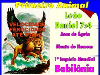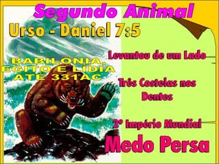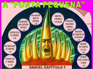 O documento resume os capítulos 2, 7 e 8 de Daniel, comparando as profecias sobre os impérios mundiais desde Babilônia até o estabelecimento final do reino de Deus. Ele identifica o "chifre pequeno" de Daniel 7 como referindo-se ao papado, e data o período de seu domínio e perseguições como de 538 d.C. a 1798 d.C., com base na profecia dos 1.260 dias.
