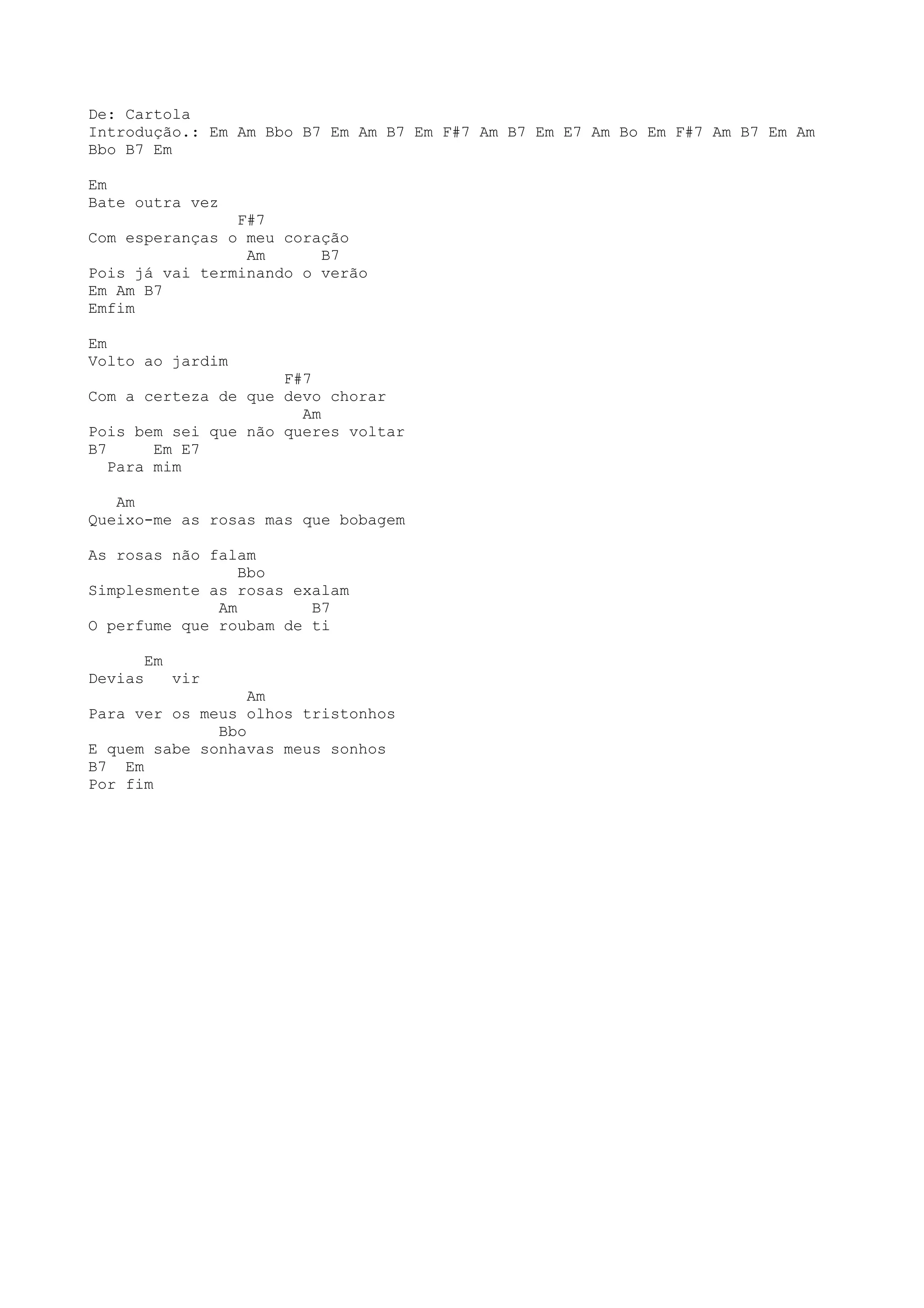 A música fala sobre o fim do verão e o retorno ao jardim com esperanças, mas também com a certeza de chorar porque sabe que a pessoa amada não vai voltar. As rosas exalam o perfume roubado da pessoa amada e o autor sugere que ela venha ver seus olhos tristonhos para quem sabe sonhar seus sonhos também.