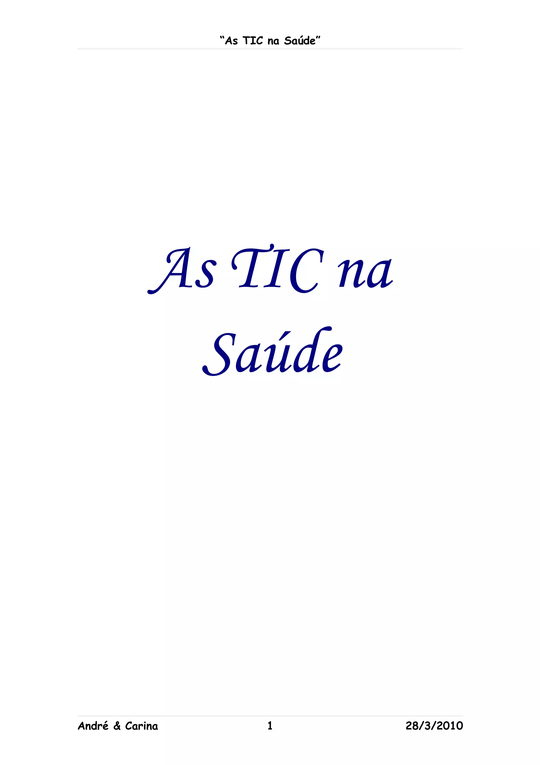O documento discute o uso de tecnologias da informação e comunicação (TIC) na saúde, incluindo robôs que auxiliam em hospitais, cadeiras de rodas e membros artificiais controlados por computador, assim como robôs cirurgiões e a telemedicina. As TIC trazem oportunidades para melhorar a precisão, segurança e acessibilidade dos procedimentos médicos.