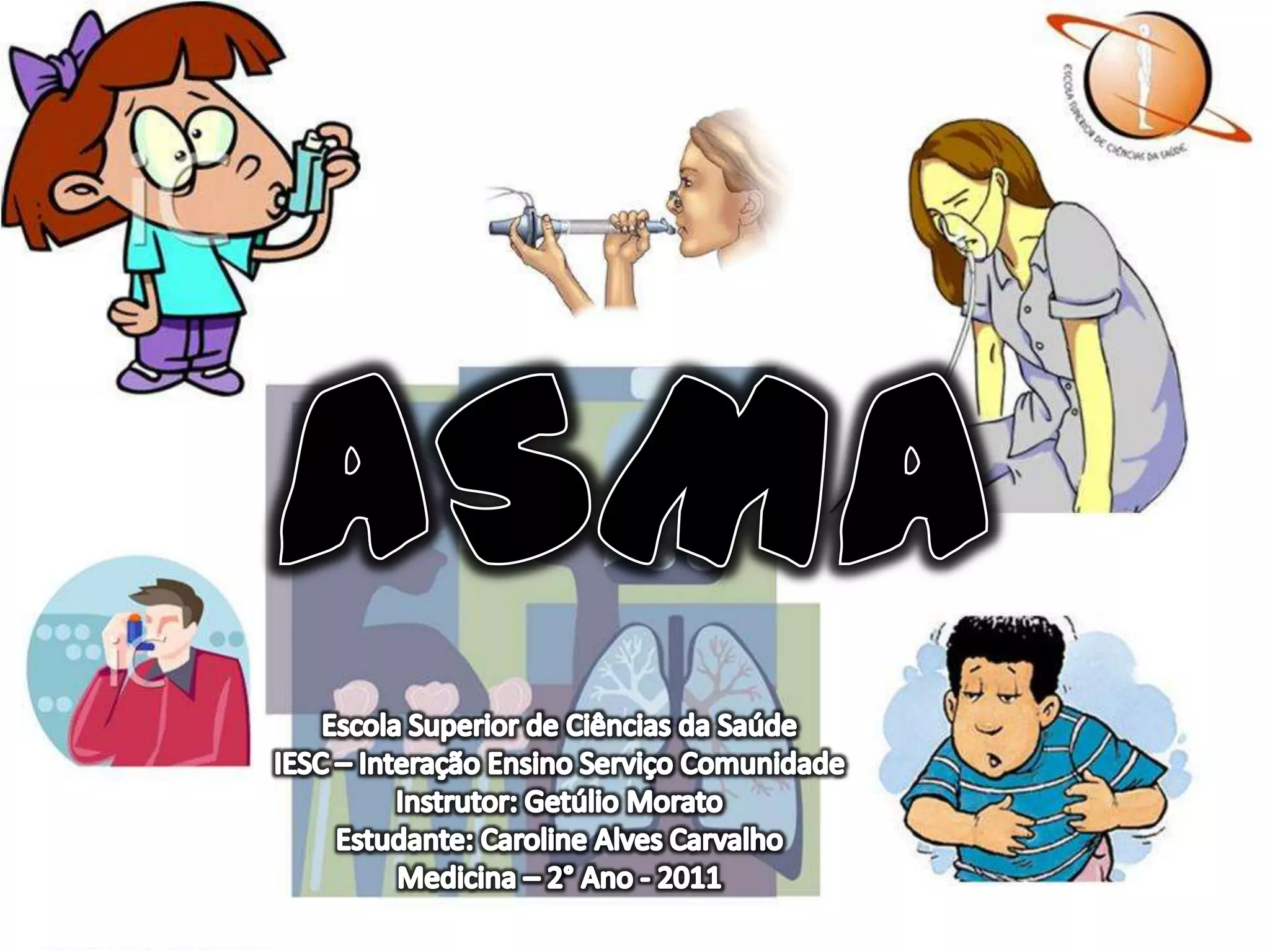 A asma é uma doença crônica das vias respiratórias caracterizada por obstrução reversível, inflamação e hiper-reatividade. Sua origem é descrita desde Hipócrates, mas foi melhor definida nos séculos XIX-XX. O tratamento envolve educação, medicação de manutenção e alívio, além de redução da exposição a fatores ambientais e alérgenos.