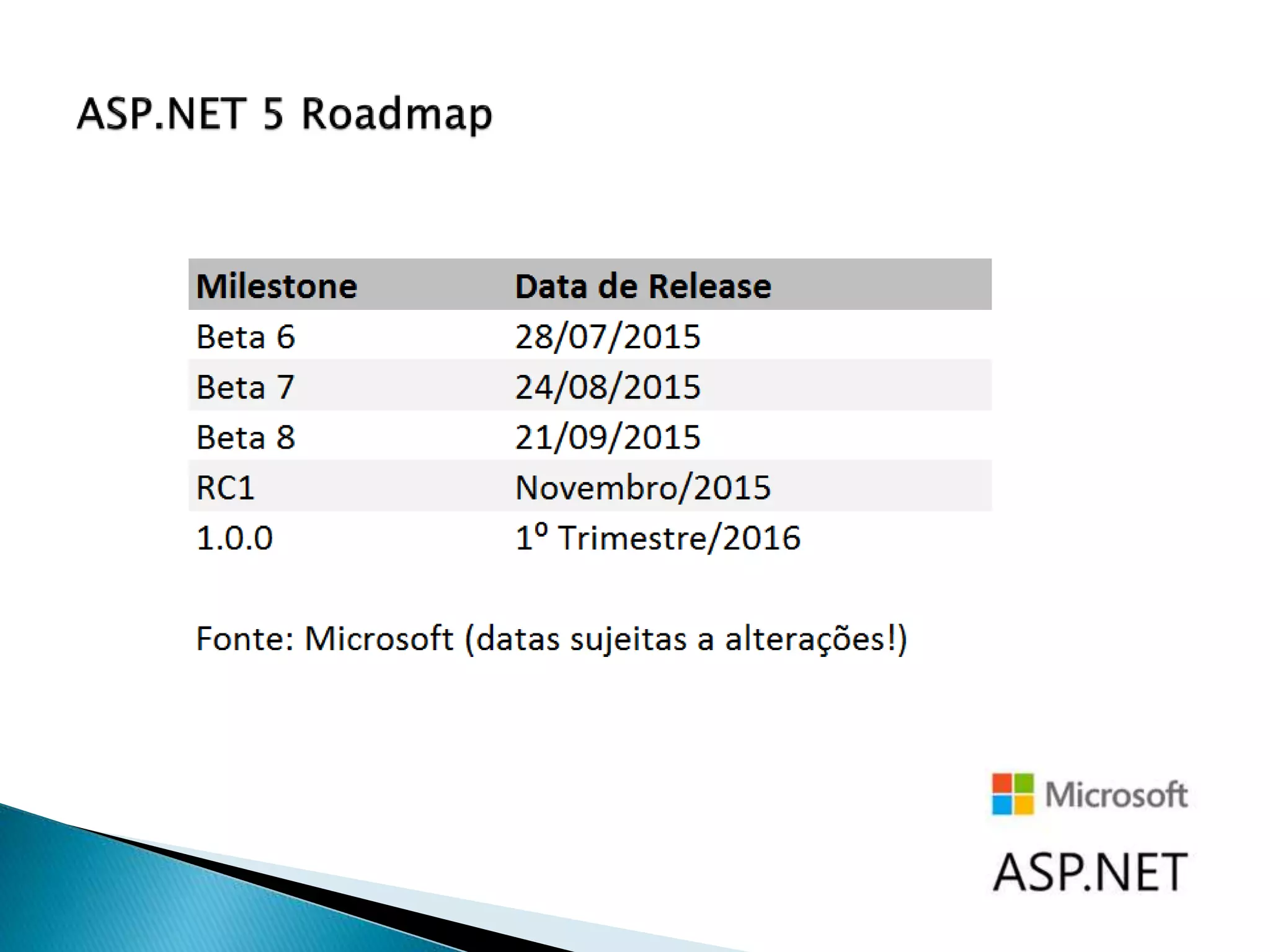 O documento resume as principais novidades da plataforma .NET e do framework ASP.NET 5, incluindo novas funcionalidades no Visual Studio 2015, melhorias na linguagem C# 6.0, dois novos runtimes, três novos tipos de projetos e mudanças significativas na arquitetura e em recursos como injeção de dependências, configurações e cache.