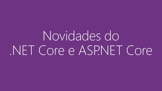 O documento apresenta as principais características e novidades do ASP.NET Core 2.0 e do .NET Core 2.0, incluindo suporte multiplataforma para Windows, Linux e Mac, arquitetura enxuta e modular baseada em OWIN, e novas funcionalidades como Razor Pages e templates para aplicações de página única.