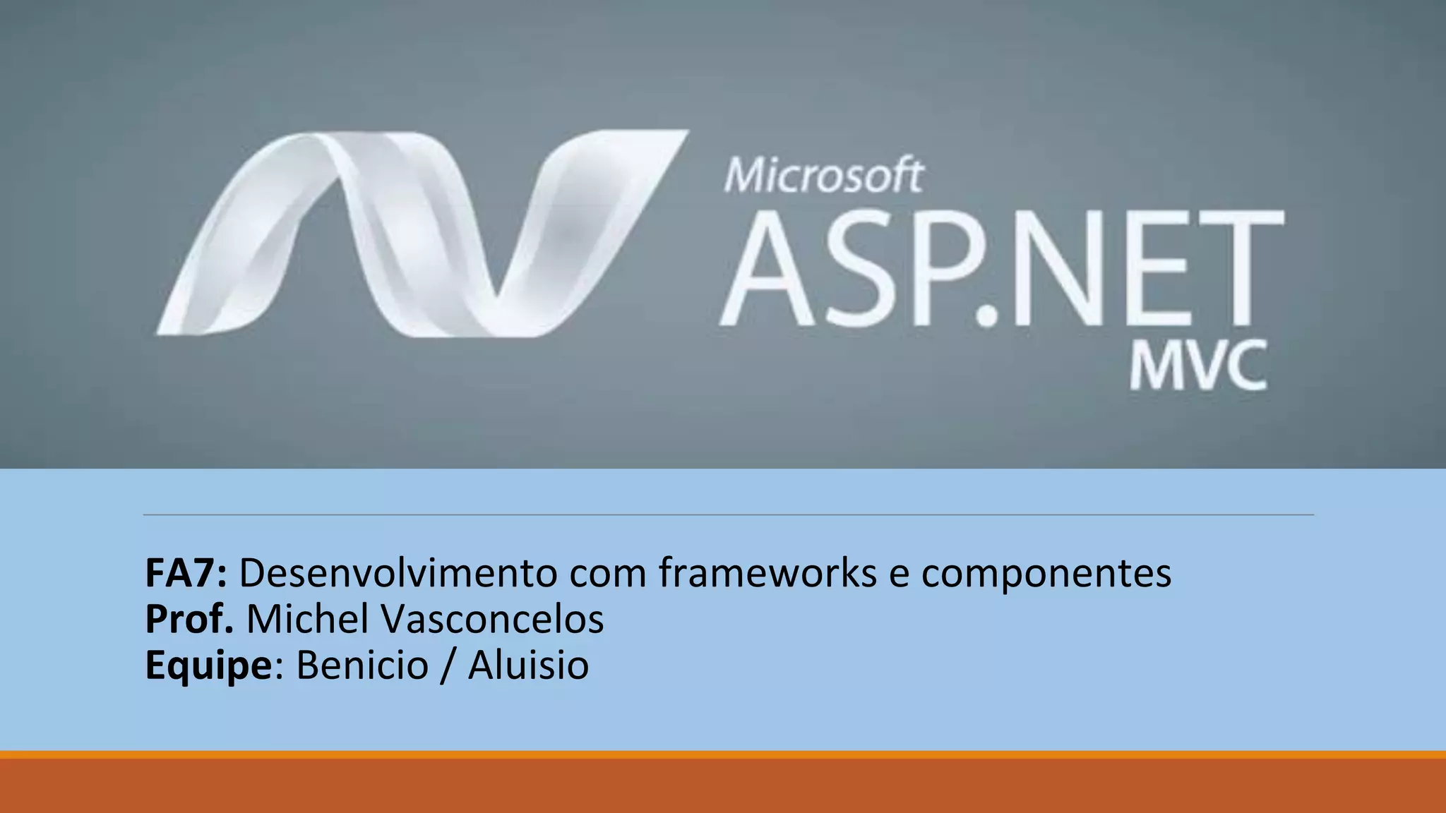 O documento apresenta o framework ASP.NET MVC, discutindo o que é ASP.NET MVC, seus principais componentes como modelo, visão e controlador, e exemplos de métodos de ação.