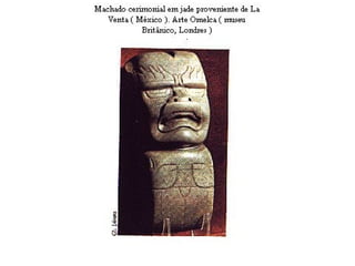 O documento descreve as civilizações pré-colombianas da Mesoamérica e dos Andes Centrais, com foco nos astecas, maias e incas. Detalha a origem, estrutura política, economia, sociedade e cultura destas civilizações, incluindo seus sistemas agrícolas complexos, arquitetura avançada e calendários desenvolvidos.