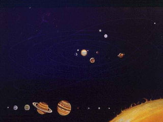 O documento resume os principais conceitos da astronomia, incluindo a teoria do Big Bang, o Sistema Solar e seus componentes, como os planetas terrestres e gasosos, além de outros corpos celestes como asteroides, cometas e meteoros. Também descreve os movimentos da Terra e da Lua, as estações do ano e as zonas climáticas resultantes da inclinação do eixo terrestre.