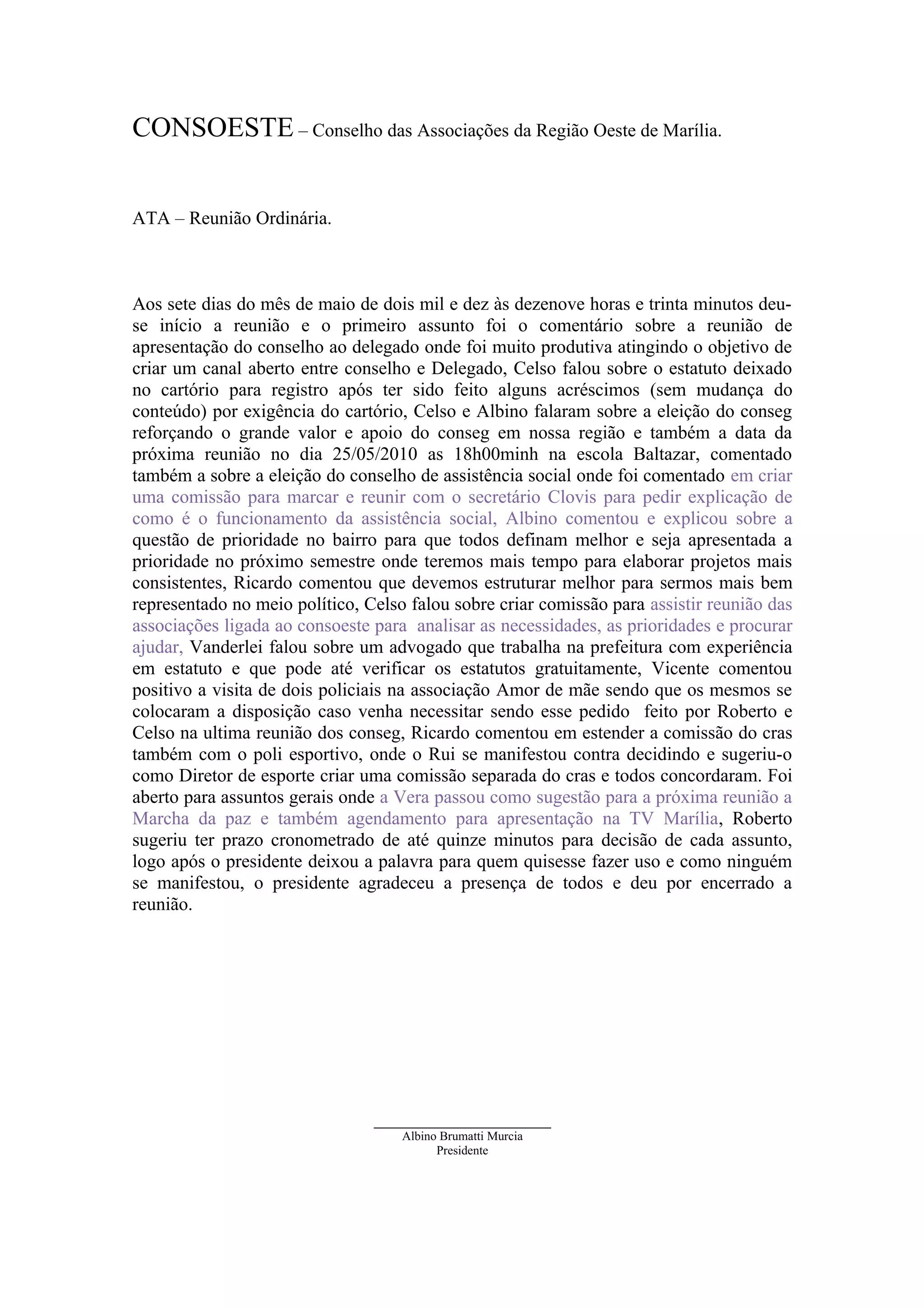 conteúdo) por exigência do cartório, Celso e Albino falaram sobre a eleição do conseg