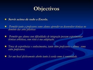 O Atelier Aberto é um espaço na escola dedicado à aprendizagem e criatividade nas artes plásticas desde 1998. Ele permite que professores e alunos aprendam novas técnicas artísticas e fornece uma atividade para ajudar na integração de alunos com dificuldades. Exposições anteriores mostraram trabalhos de alunos e professores nas áreas de azulejo, pintura, cerâmica e outros.