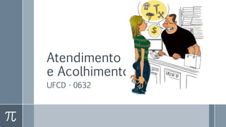 O documento discute os principais aspectos do atendimento e acolhimento de clientes. Ele destaca que é necessário mais do que simpatia para atender bem os clientes, e que as empresas frequentemente falham no atendimento por falta de conhecimento e liderança. Também descreve as qualificações, comportamentos e atitudes essenciais para os profissionais de atendimento, como escutar ativamente e identificar as necessidades dos clientes.