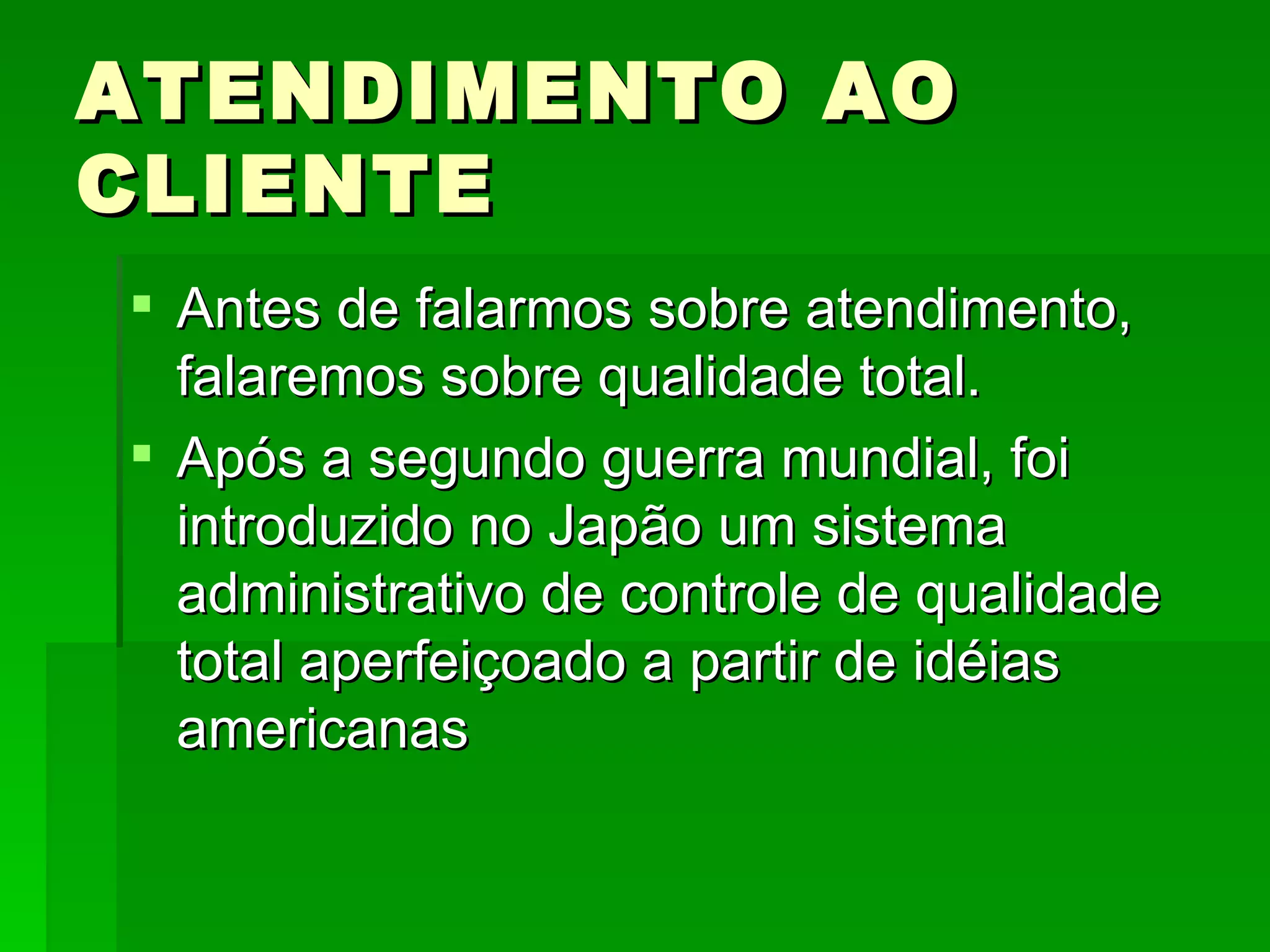 O documento discute a importância da qualidade total e do atendimento ao cliente, destacando que a satisfação do cliente depende da percepção em relação à expectativa. Ele também apresenta os principais conceitos de cliente interno e externo, momentos da verdade, comunicação e dicas para um bom atendimento.