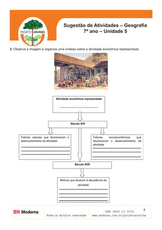 1) O documento fornece sugestões de atividades sobre a geografia do Nordeste brasileiro para alunos do 7o ano, incluindo identificar os principais problemas da região, suas sub-regiões, atividades econômicas históricas e atuais e aspectos do clima.