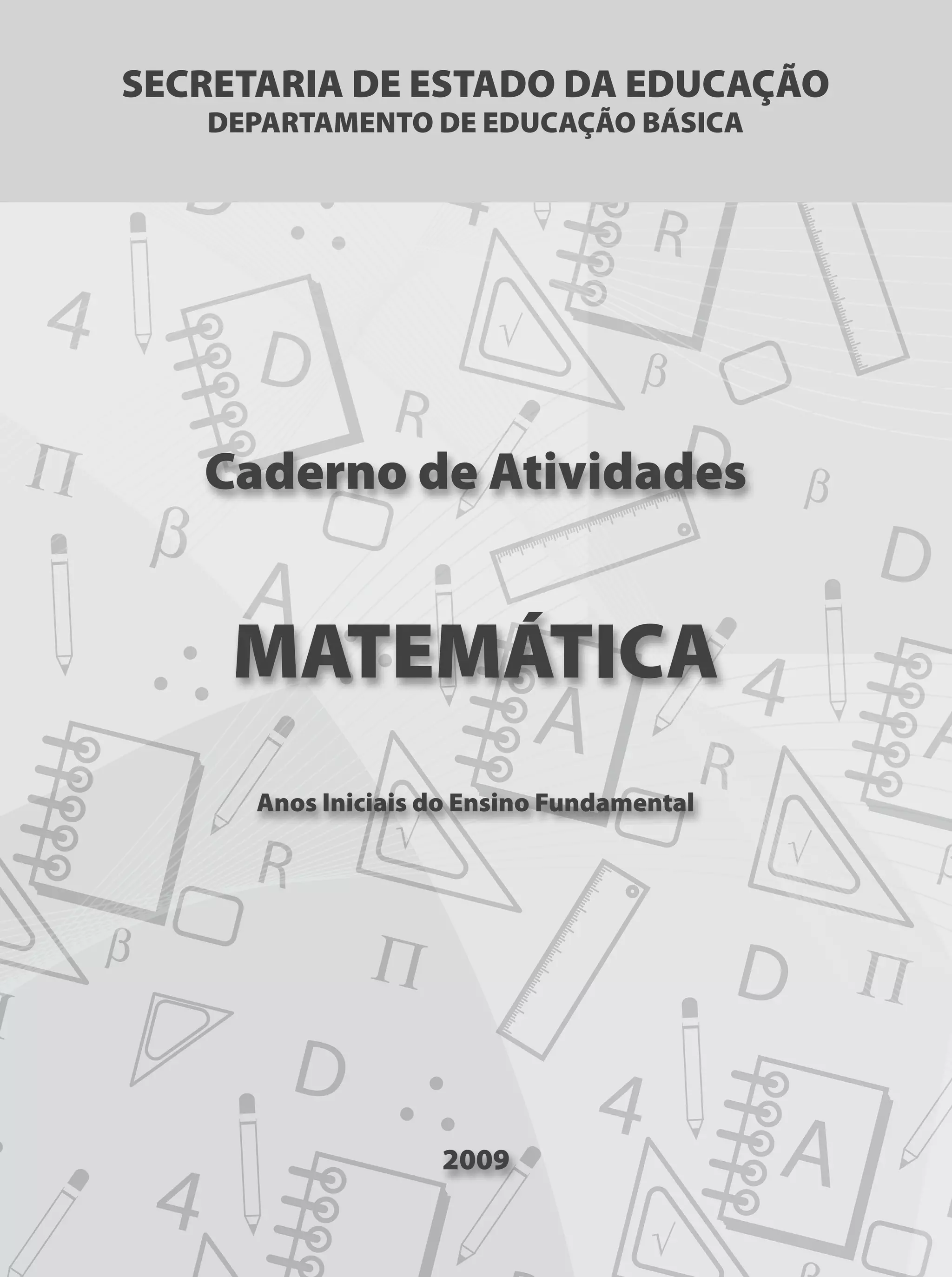Este documento apresenta um caderno de atividades de matemática para alunos dos anos iniciais do ensino fundamental. O caderno contém questões sobre geometria, grandezas e medidas, números e operações e tratamento da informação, que são os principais conteúdos de matemática para essa etapa escolar. O objetivo é ajudar os alunos a se prepararem para avaliações como a Prova Brasil aplicada pelo Ministério da Educação.