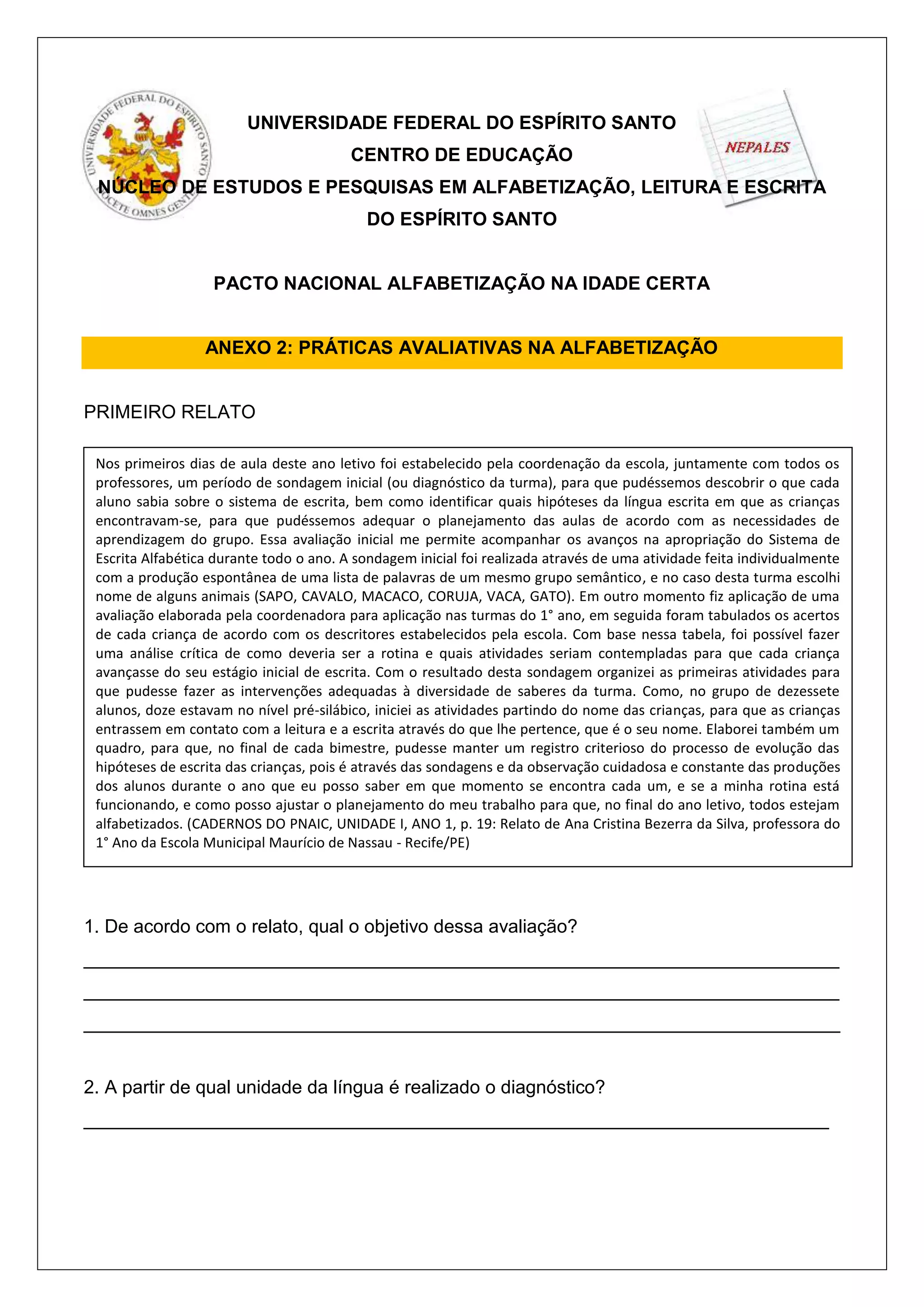 O relatório descreve como a professora realizou uma avaliação inicial dos alunos para identificar em que nível de conhecimento sobre a escrita cada um se encontrava, como planejou atividades individuais com base nos resultados e como usou observações contínuas para acompanhar o progresso de cada aluno ao longo do ano letivo.