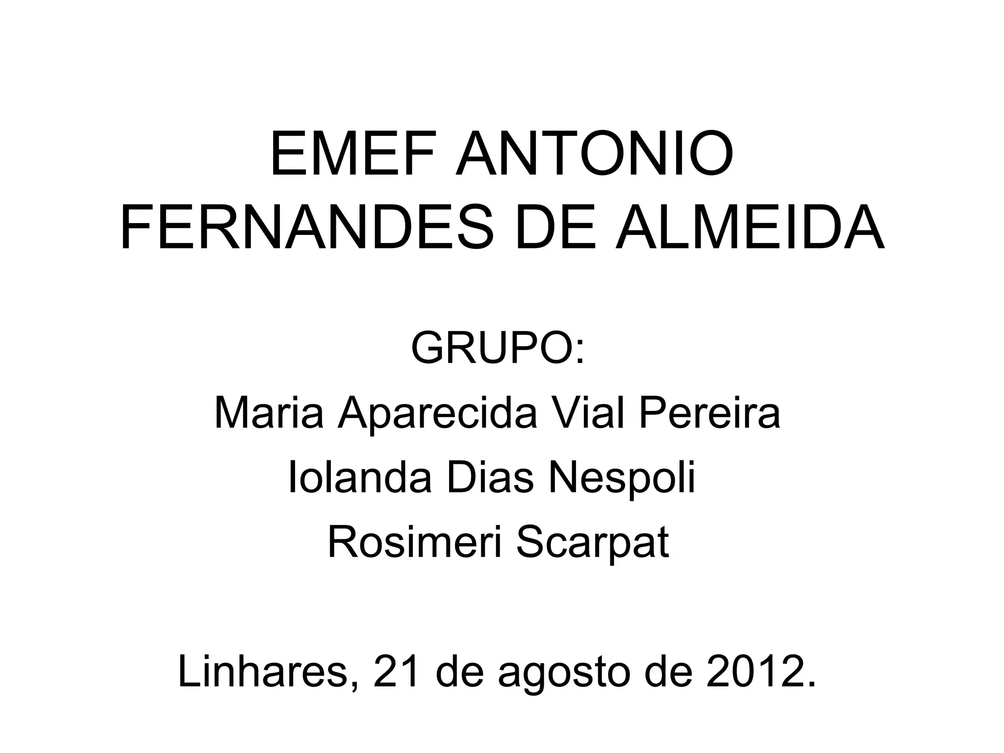 O documento discute o uso de tecnologia na escola EMEF Antonio Fernandes de Almeida. Alguns professores usam tecnologias simples em seus planos de aula e projetos para inovar o conhecimento dos alunos, enquanto outros estão começando a adotar a tecnologia. O documento também lista planejamentos, aulas e cronogramas para uso da sala de informática como modalidades de uso de tecnologia na escola.