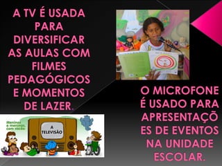A sala de informática da escola pode enriquecer não apenas a aprendizagem dos alunos, mas principalmente a do professor, permitindo que eles explorem novas tecnologias e métodos de ensino. A atividade faz parte de um curso sobre tecnologias na escola realizado em 11 de outubro de 2011 na Fortaleza do Tabocão no Tocantins.