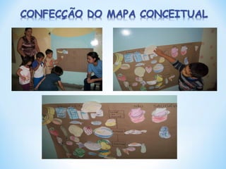 Este documento descreve um projeto desenvolvido por cinco professoras de duas escolas para educar alunos de berçário e maternal sobre hábitos alimentares saudáveis. O projeto tem o objetivo de identificar as preferências alimentares dos alunos, incentivar bons hábitos, reconhecer alimentos benéficos à saúde e seu cultivo, e ensinar sobre a origem e controle do consumo de alimentos.