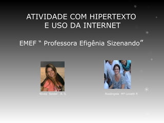 O documento descreve uma atividade realizada com alunos de uma escola em Linhares, ES sobre os estados físicos da água utilizando recursos de hipertexto e internet. As atividades incluíram pesquisa na internet, conversa com um robô virtual, assistir a um vídeo, construir histórias em quadrinhos e apresentar um trabalho final em grupo. O objetivo era ensinar sobre os estados da água e praticar o uso de ferramentas tecnológicas.