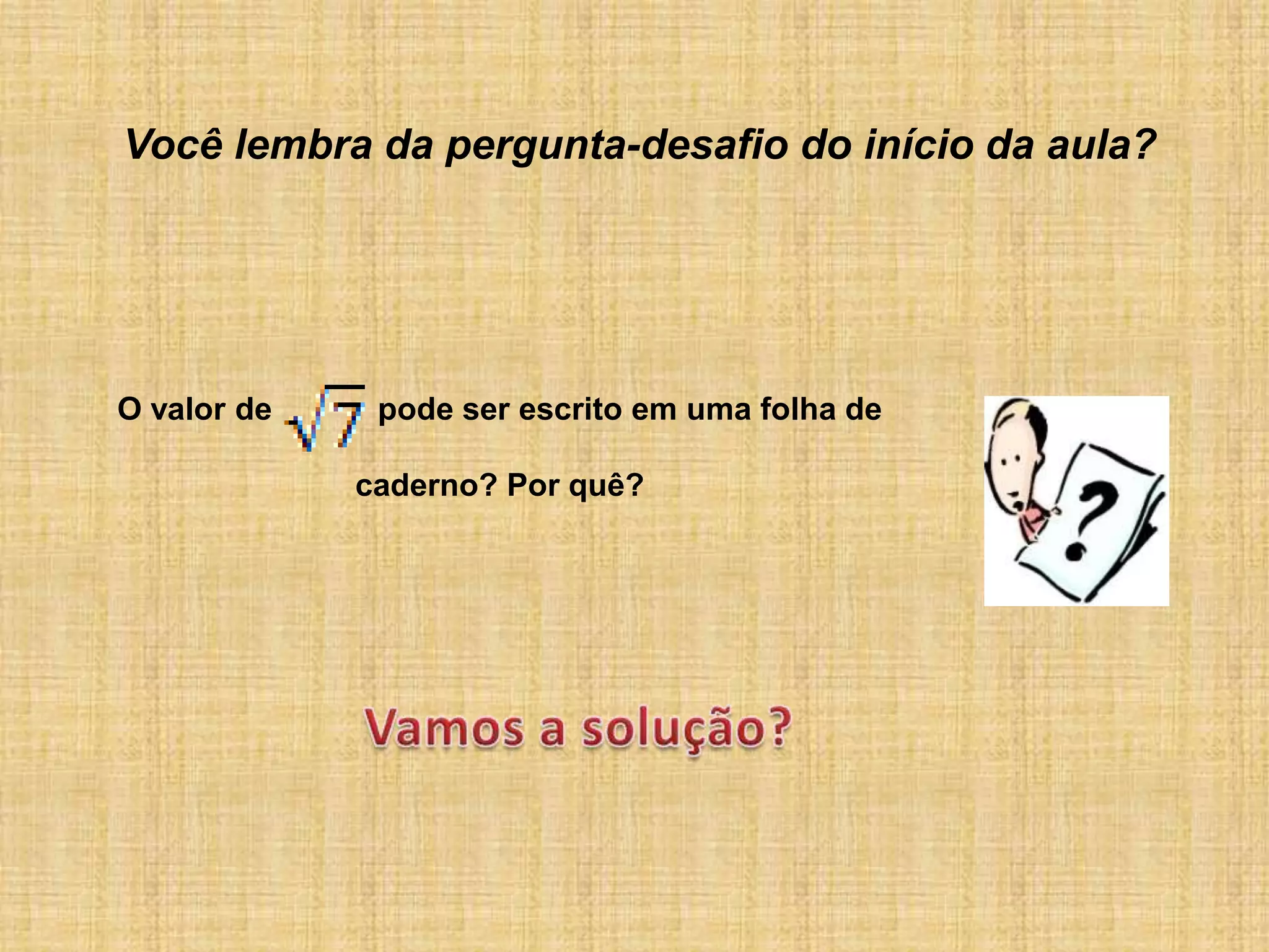 O documento discute porque o valor de π não pode ser escrito em uma folha de papel. Ele explica que π é um número irracional infinito, portanto não pode ser representado por uma fração exata ou periódica decimalmente. Assim, seria impossível escrever seu valor completo em qualquer folha de papel.