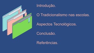 O documento discute o uso de tecnologias móveis na educação. Apresenta o tradicionalismo nas escolas e a visão de Vygotsky sobre tecnologia como ferramenta mediadora no aprendizado. Conclui que as tecnologias digitais podem ser adotadas pelos professores para desenvolver conteúdos de forma diferenciada e favorecer o ensino-aprendizagem.